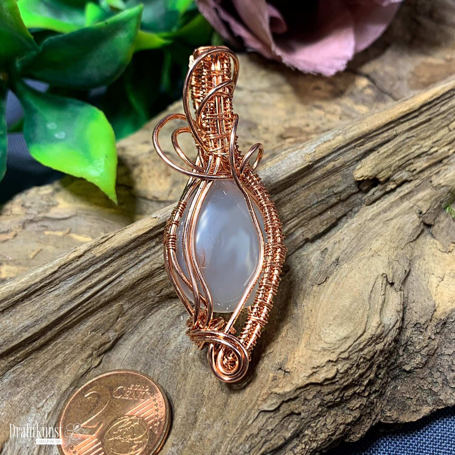 Kupfer Drahtschmuck Anhänger 0419-2808-0233 Achat 6 x 2,2cm (Höhe x Breite)