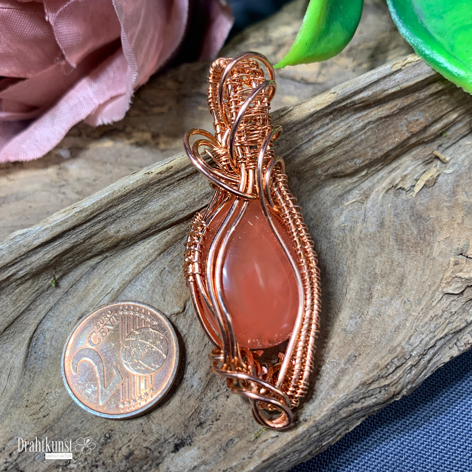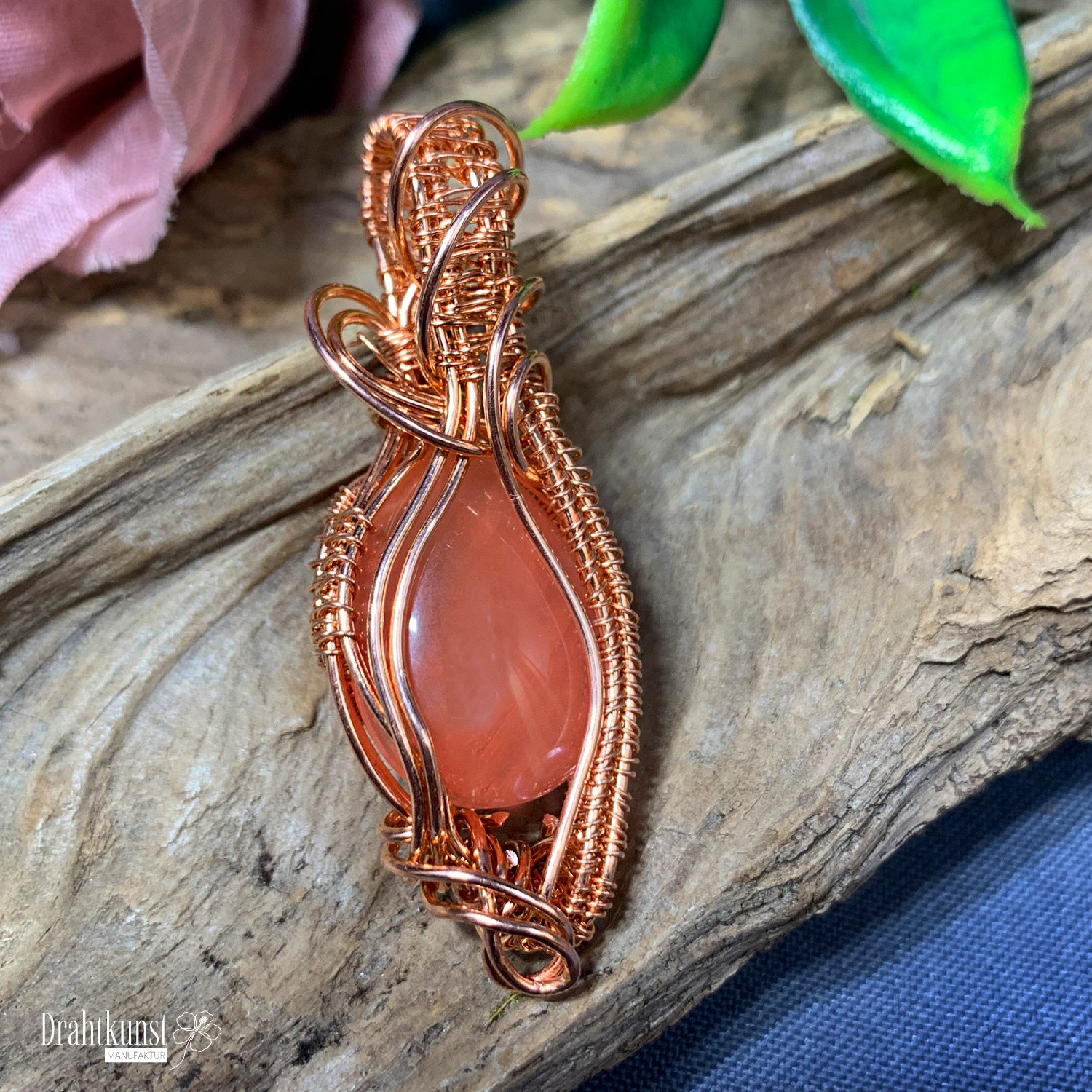 Kupfer Drahtschmuck Anhänger 0419-2808-0235 Kirschquarz 5,8 x 2,1cm (Höhe x Breite)