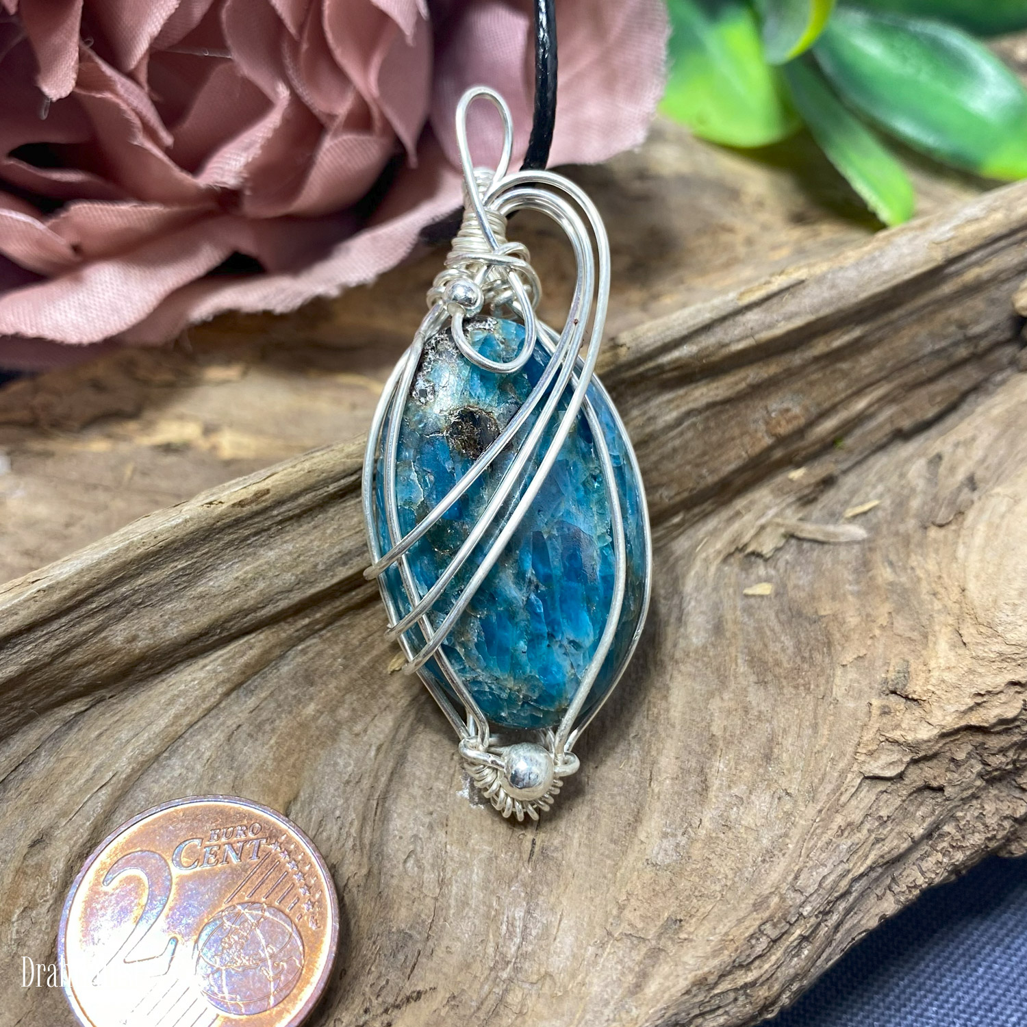 925 Sterling Silber Drahtschmuck Anhänger 0419-2808-0190 Apatit „Welle“ 5,5x 2,3 cm (Höhe x Breite)