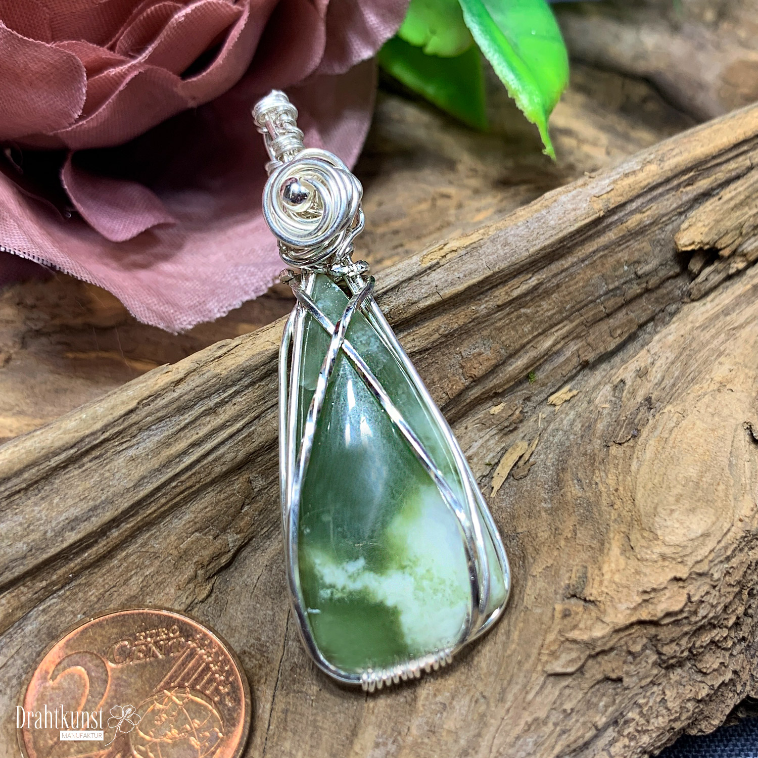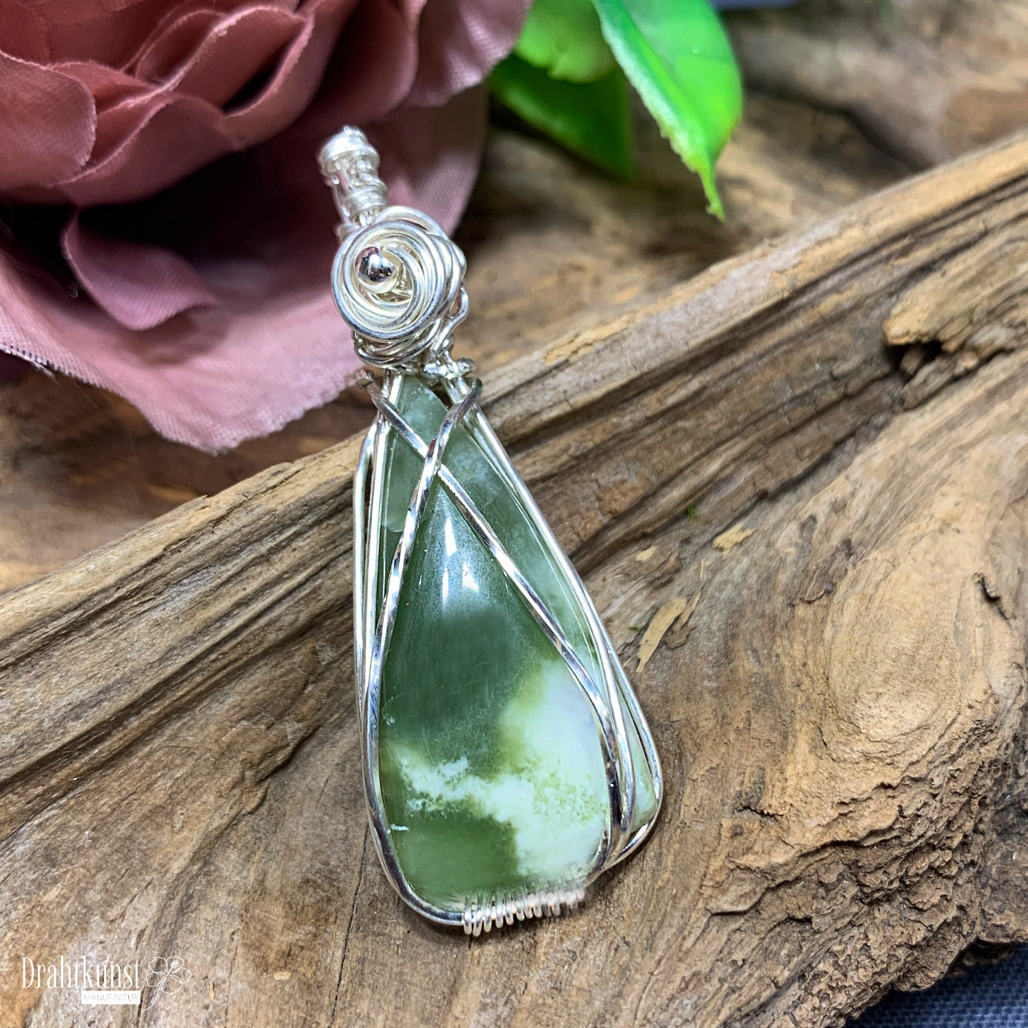925 Sterling Silber Drahtschmuck Anhänger 0419-2808-0219 grüner Pietersit 5,4 x 1,9cm (Höhe x Breite)