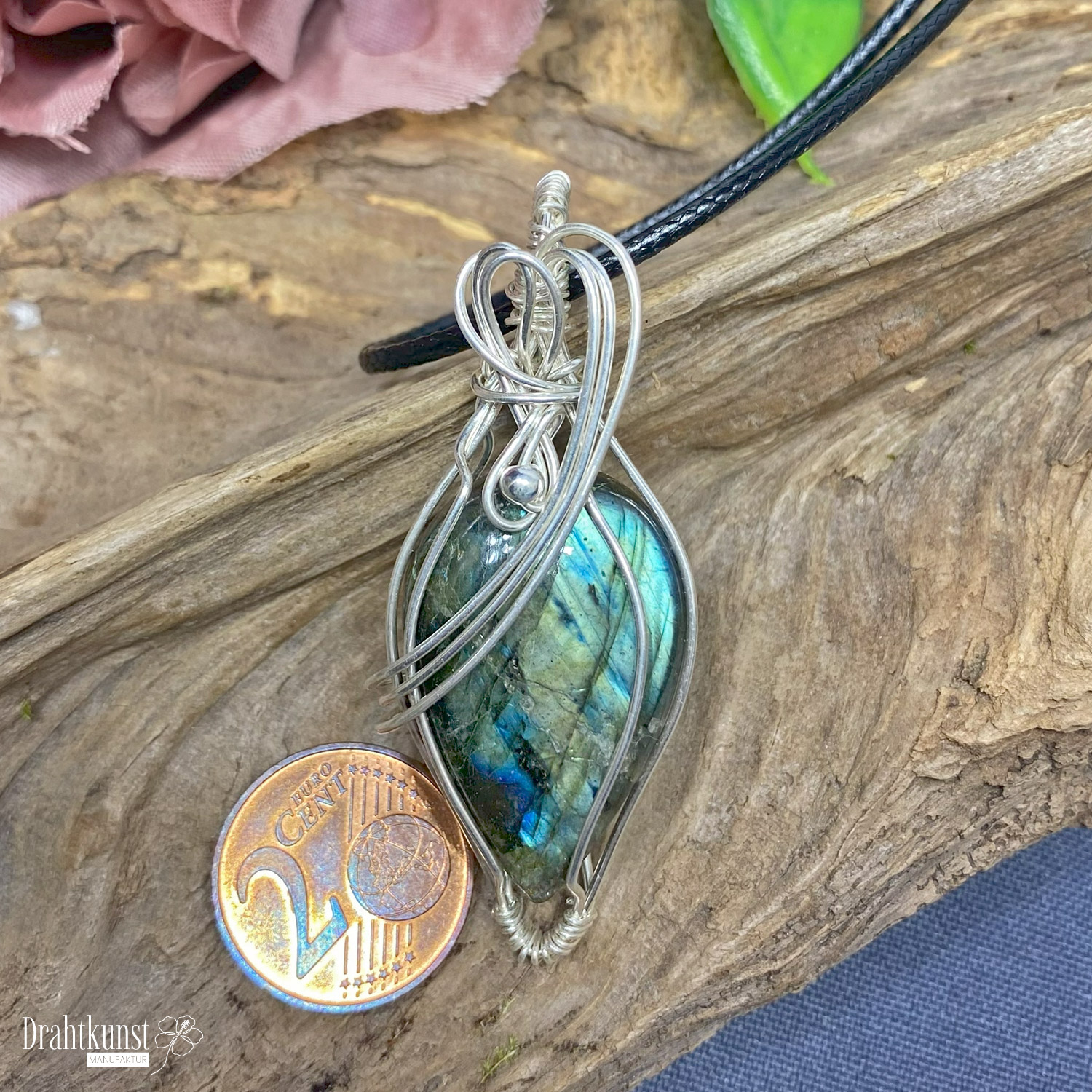 925 Sterling Silber Drahtschmuck Anhänger 0419-2808-0185 Labradorit 5,6x 2,2 cm (Höhe x Breite)