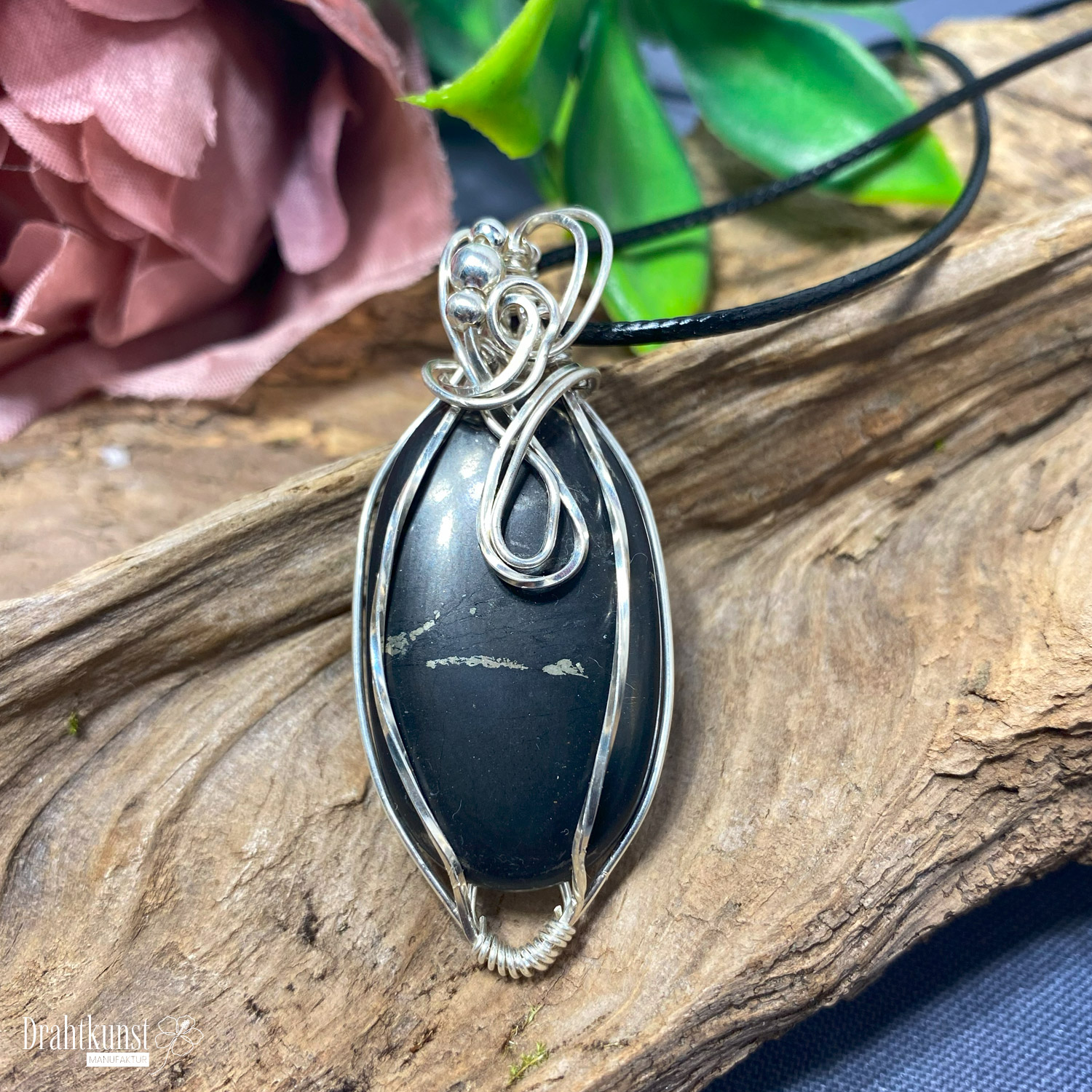 925 Sterling Silber Drahtschmuck Anhänger 0419-2808-0184 Shungit 5,5x 3,5 cm (Höhe x Breite)